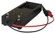 Die Akkuladehalterungen vom Typ 2 sind für einen Akkutyp ausgelegt. Der Anschluss der Ladehalterungen an die Akkuprüf- und Ladegeräte curatio erfolgt über flexible Kabel mit zwei 4 mm Sicherheitsstecker.